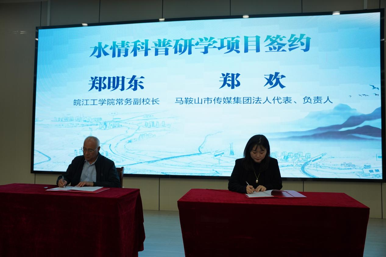 市教育局党委书记、局长王焰与皖江工学院董事长朱洪高共同为“全国高校综合性教育实践体验基地”揭牌;市传媒集团相关负责人详细介绍了马鞍山市研学平台的资源整合规划,以及水情科普研学项目的核心内容;皖江工学院常务副校长郑明东与市传媒集团法人代表、负责人郑欢现场签约,进一步敲定双方在研学课程开发、平台运营等方面的合作细节。